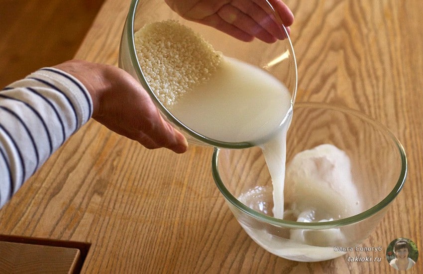 Такую процедуру повторите 2-3 раза. Каждый последующий раз вы заметите, что вода становится чище, чем была в предыдущий раз. Только вода не будет совершенно прозрачная, потому что рис — это крахмалистая крупа.