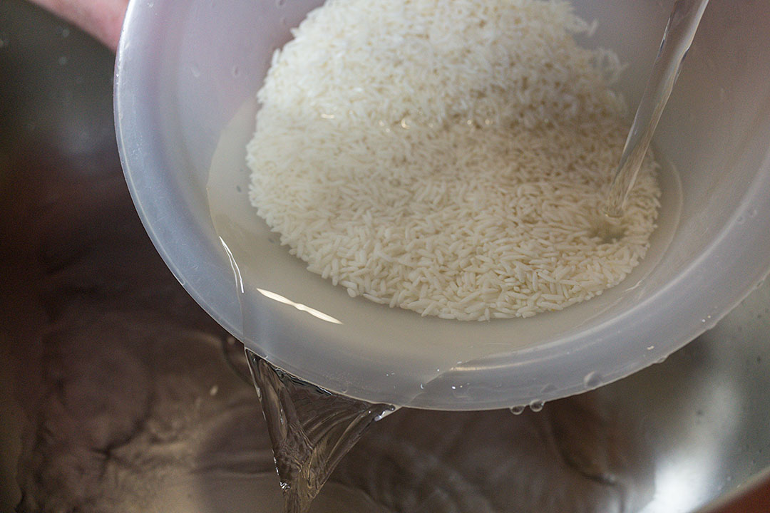 Важно, в процессе мытья не нарушить целостность зерен. Чтобы избежать повреждения зернинок, рис нужно пересыпать в дуршлаг или мелкое сито и смыть с его поверхности «белую пыль» под проточной водой.