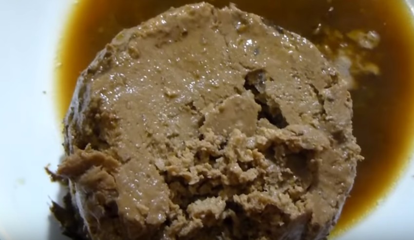 После вскрытия упаковки нужно изучить ее содержание. Куриный паштет должен иметь однородную консистенцию, без сгустков и комков. В банке не должно быть жидкости, запах слабовыраженный, приятный. Цвет качественного продукта светло-коричневый или имеет немного сероватый оттенок, но ни в коем случае не розовый или темно-коричневый. Слишком интенсивный оттенок говорит о том, что в продукт добавили красители.
