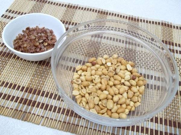- сушеный арахис без скорлупы, но в шелухе — лущеный;