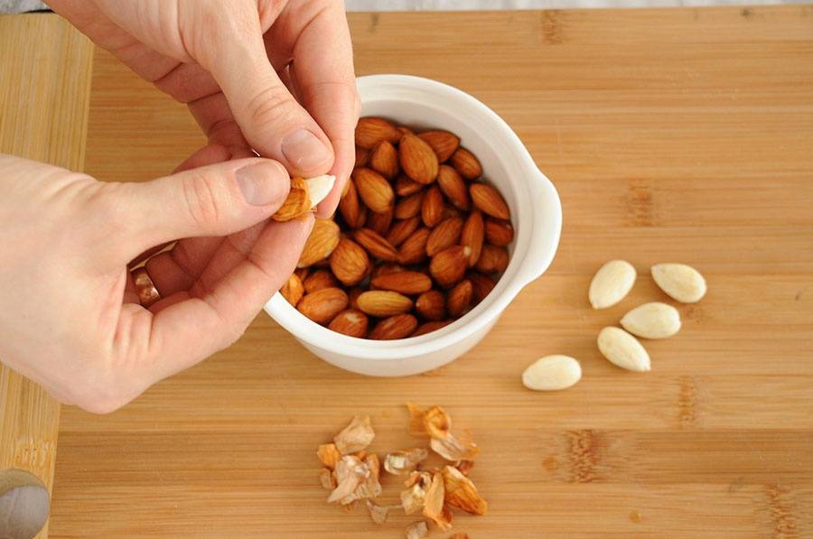- После потемнения ядер слегка остужаем их и снимаем всю шелуху.