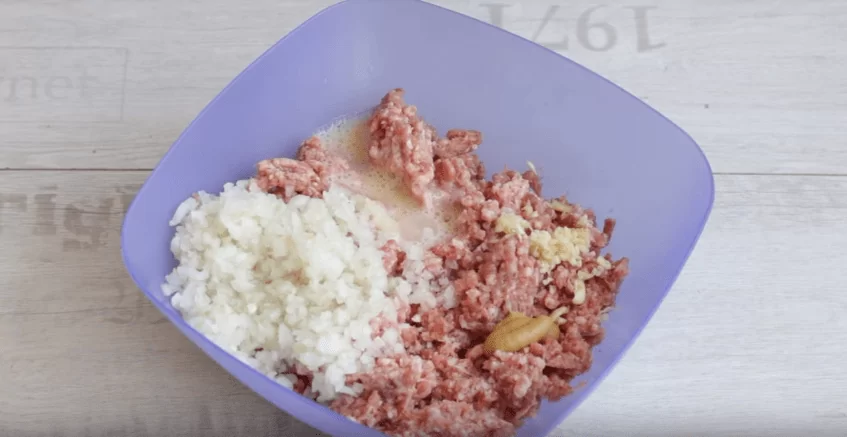- В первую очередь займитесь фаршем. Перекрутите его, не забывая положить 2 луковицы и чеснок, присолите, приперчите, добавьте любимые приправы. Соответственно, можно пойти и другим путем: просто прибавить к готовому фаршу мелко порезанные овощи и не перекручивать на мясорубке.