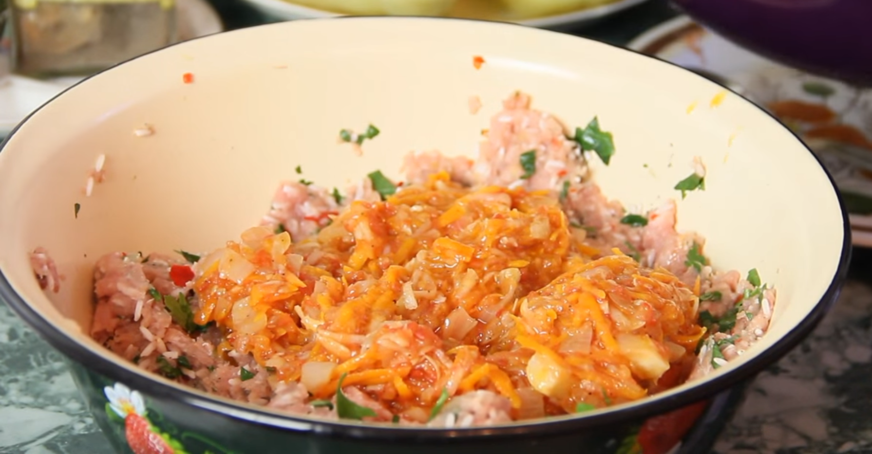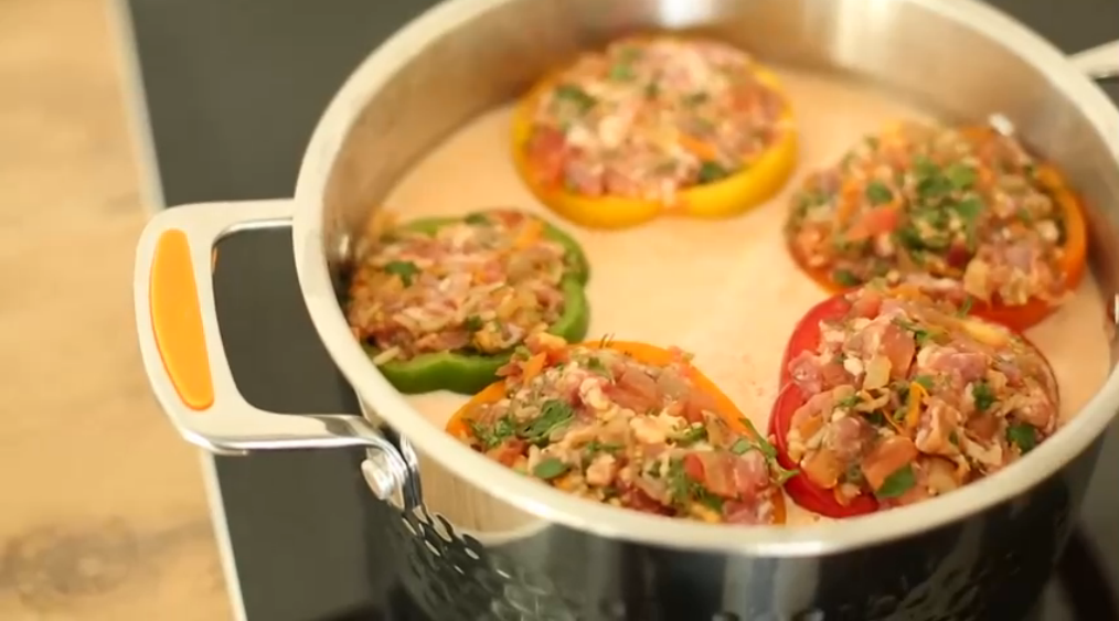 Автор этого ролика предлагает свой любимый рецепт фаршированного перца.