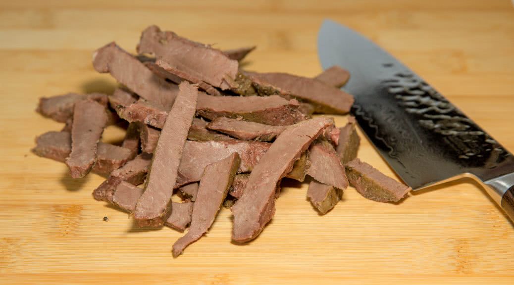 - Срезать жир и жилы. Нарезать небольшими кусочками.