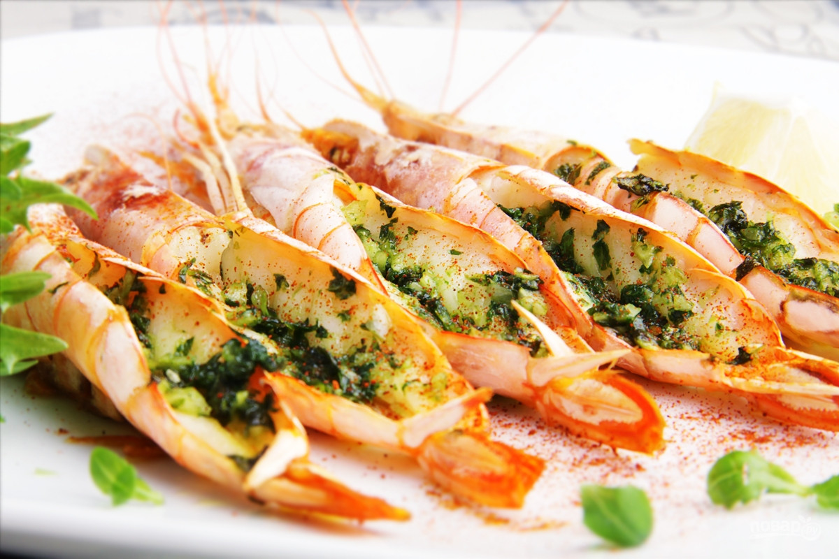 Лангустины, запеченные с травами