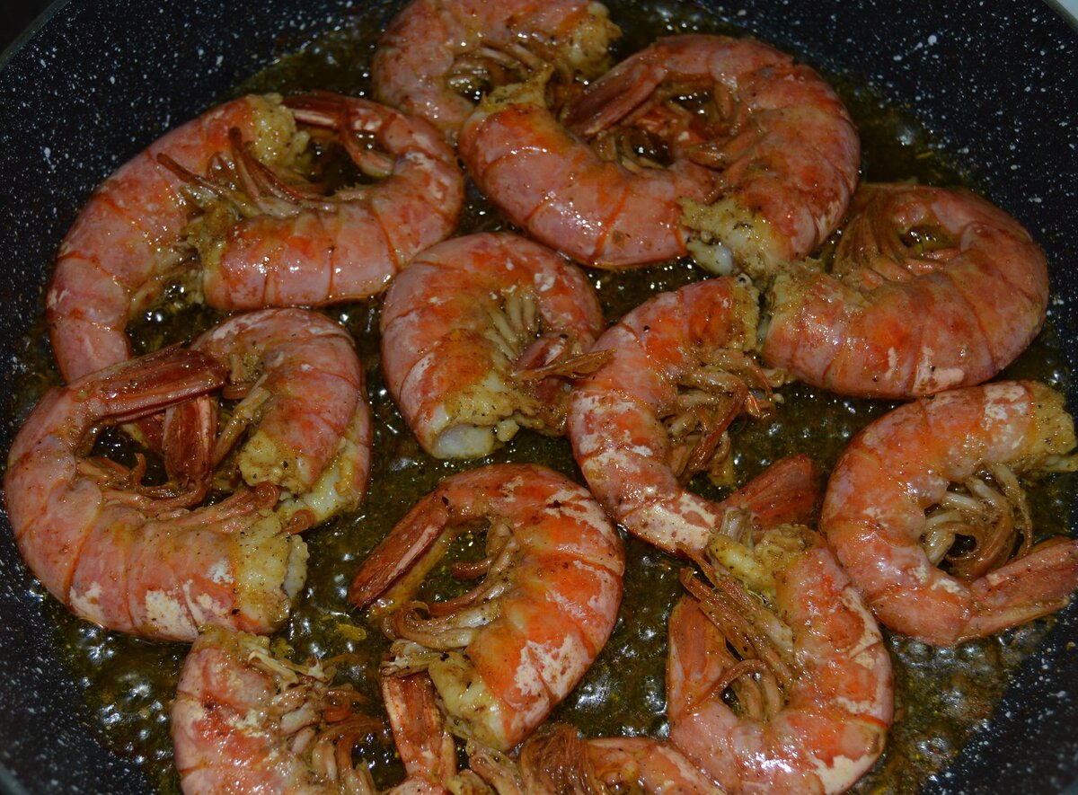 Разогрев сковороды. Нагреть сковороду перед жаркой лангустинов нужно на среднем огне с добавлением масла. Начинать жарить нужно на среднем или высоком огне.