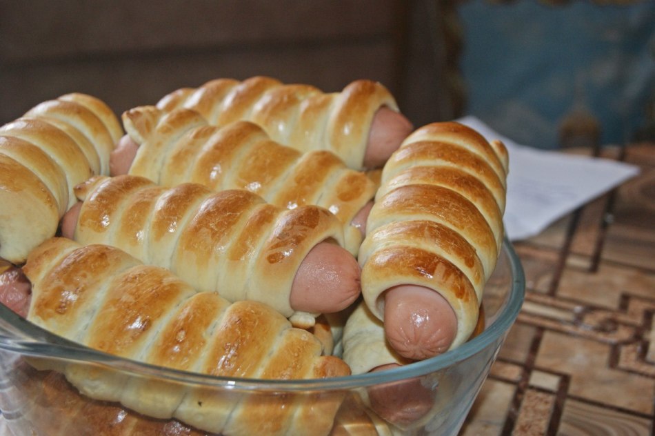 Чтобы испечь 4 сосиски в тесте понадобится:
