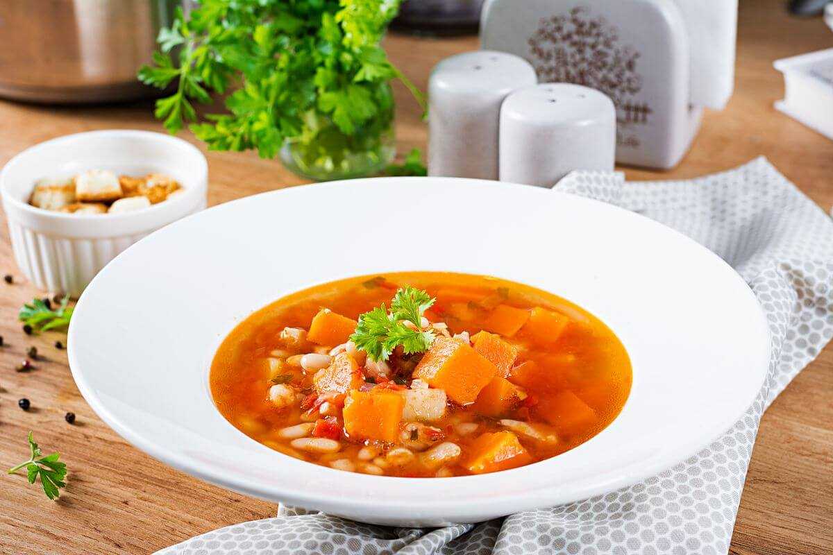 Это блюдо является самым насыщенным и сытным. В нем собрано наибольшее количество овощей. Для вкуса можно добавить в овощной бульон ложку томатной пасты, специи и немного сметаны 15%. Употреблять 3 раза в день.