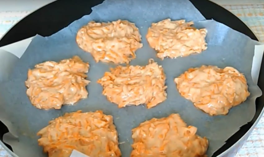 5. В духовку, предварительно разогретую до 180 °С, поставьте оладьи для запекания на 15 минут.