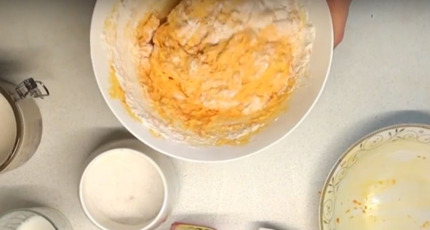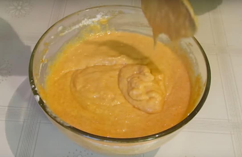 Шаг 2. Добавляем все ингредиенты и тщательно размешиваем. В результате должна получиться достаточно плотная консистенция – как сметана. Лучше дать постоять тесту примерно 15-20 минут.