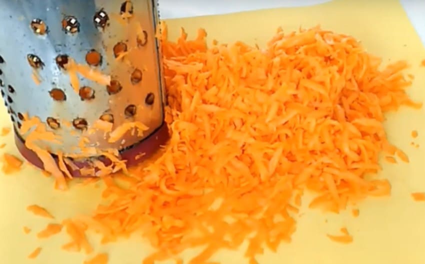 Шаг 1. Измельчаем овощ с помощью терки (можно это сделать и на блендере или через мясорубку).