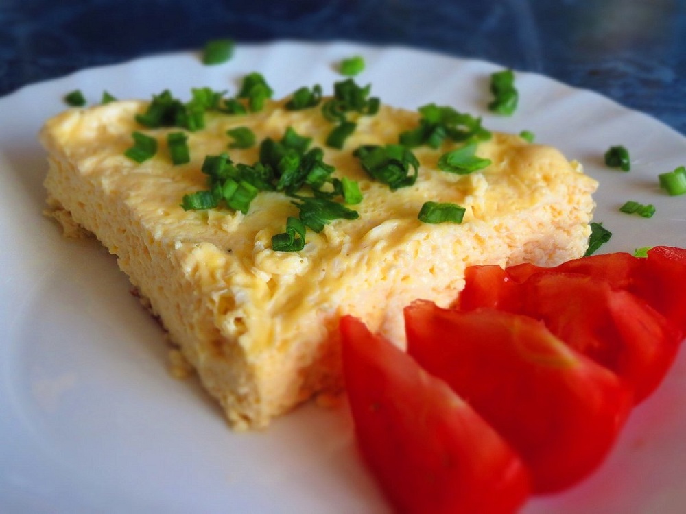 Сочно, нежно, вкусно – омлет с сыром и помидорами