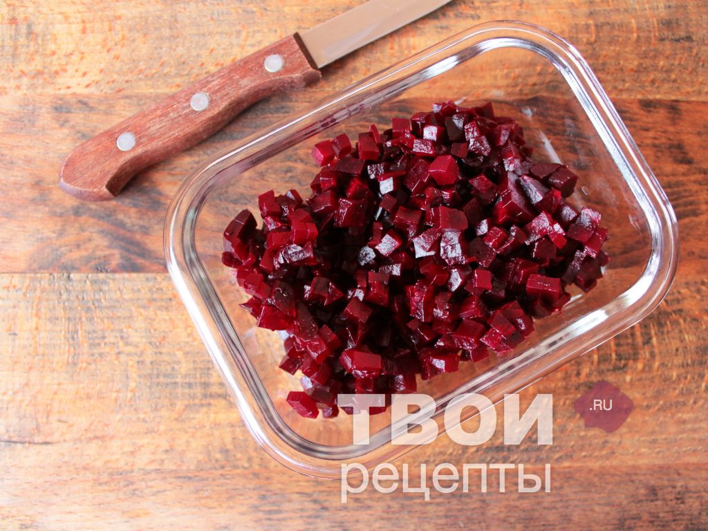 Для этого рецепта свеклу лучше приготовить заранее, чтобы она успела полностью остыть.