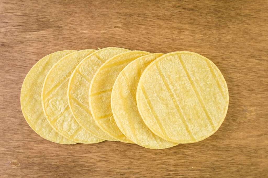 - Выбор лепешки: следует искать твердые кукурузные тортильи. Традиционные мексиканские лепешки изготавливаются с добавлением лаймового сока. Многие магазинные варианты не содержат его, и при этом наполнены дополнительными добавками, увеличивающими срок хранения. Поэтому стоит перед покупкой прочитать этикетку и выбрать тортилью, в составе которой только 3 трех ингредиента: кукурузная мука, вода и лайм.