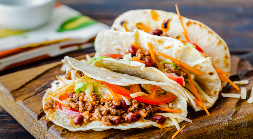 Вариантов аппетитных блюд мексиканской кухни — великое множество. Существует даже вегетарианский такос, который особенно актуален в жару. Но классический такос готовят с говядиной или курицей.