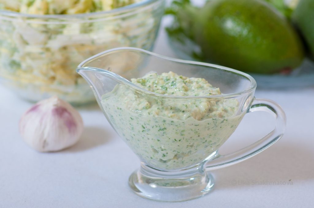 Из майонеза и чеснока получается удивительно нежным и вкусным, с приятным ароматом зелени. По желанию в него можно добавить различные пряности и специи.