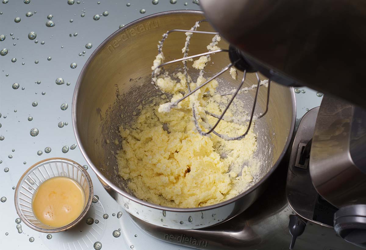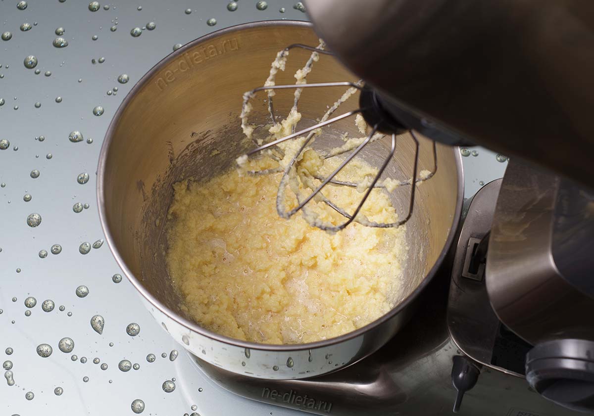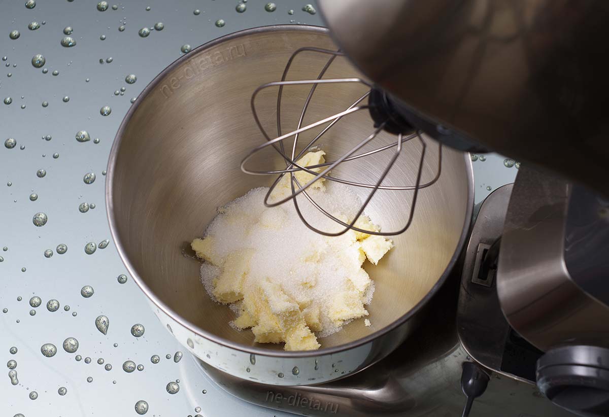 Растереть масло с сахаром на невысоких оборотах миксера или кухонного комбайна.