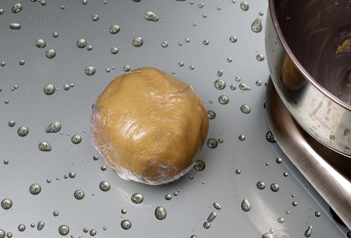 - Затем, тесто отправляем в холодильник, предварительно сделав из него комочек. Там ему нужно находиться не менее 15 минут.