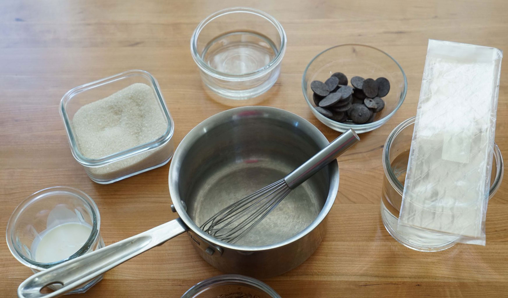 Требуется: 300 г сахара, 1/2 стакана воды, 1 ст. л. уксуса, 50 г шоколада или 30 г какао-порошка, 1 ч. л. сливочного масла, ванилин.