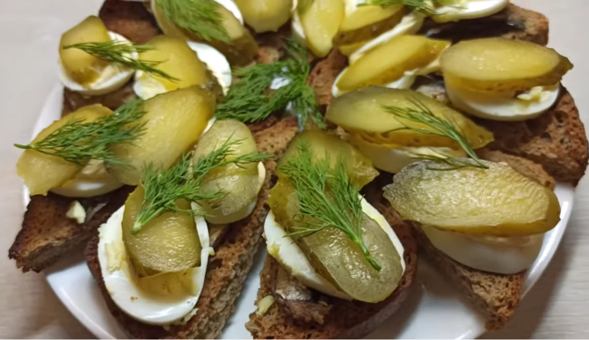 Далее можно сразу же подавать бутерброды к столу, пока хрустящие хлебные основы не размокли.