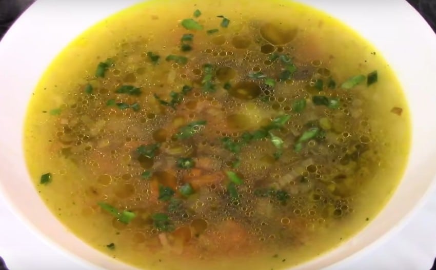 Добавьте в суп лимонного сока по вкусу, дайте настояться около 5 минут и подавайте. При подаче разлитое по тарелкам блюдо украсьте зеленью. А можете посыпать порцию домашними сухариками из хлеба.