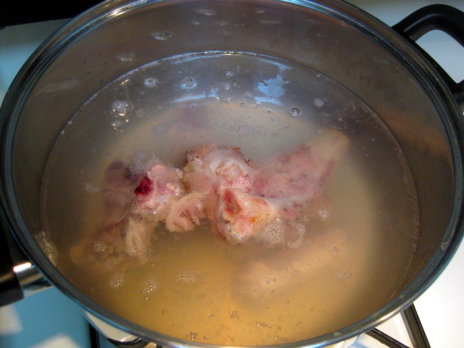 - Кости складывают в кастрюлю и заливают холодной водой.