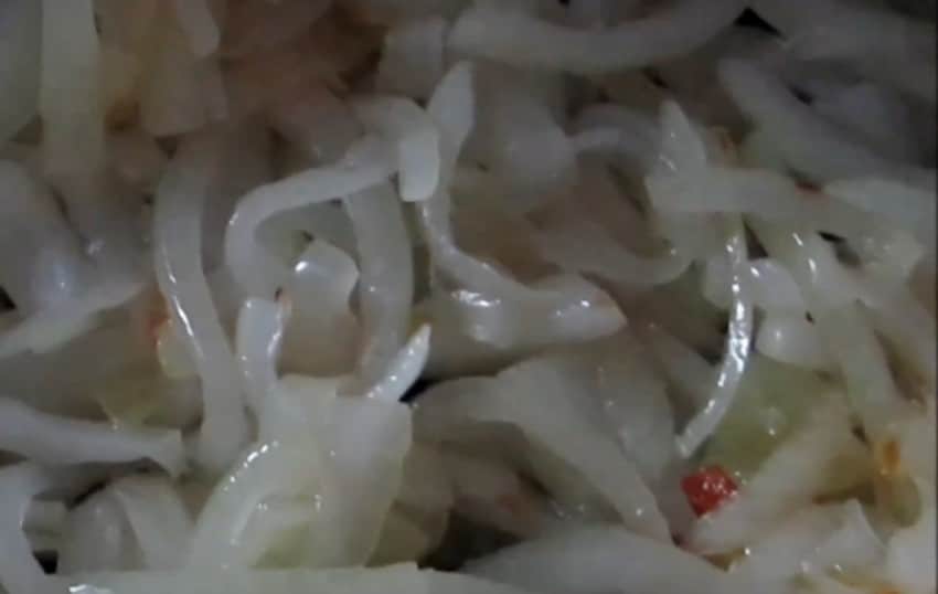 8. В эту же сковороду выложите овощи и пассируйте до полуготовности. Большую часть лука и моркови выложите в тарелку.