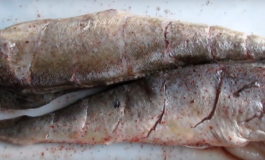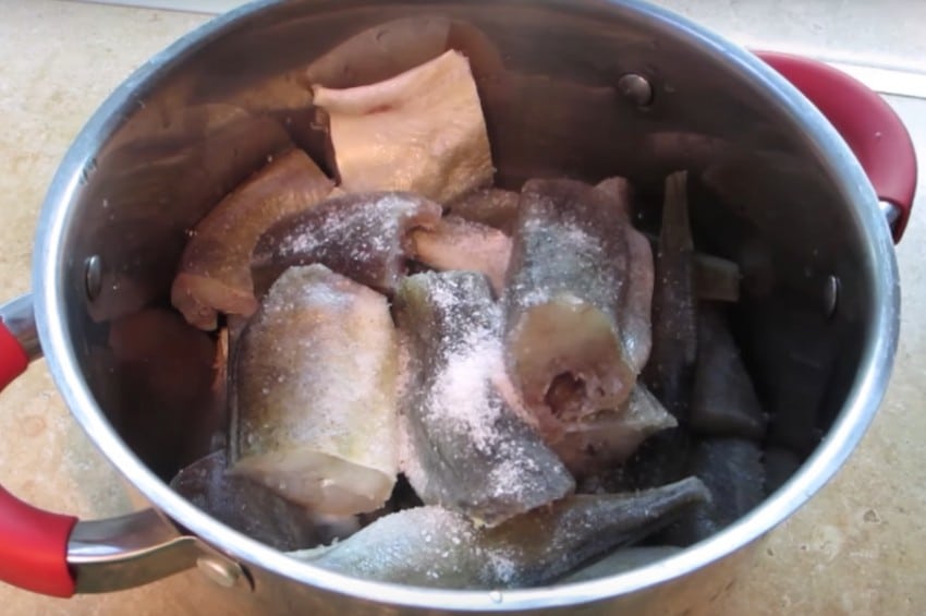 Солью хорошенько натереть рыбу снаружи, изнутри и обязательно положить побольше в жабры. Оставить на 8-10 часов. Потом залить большим количеством воды, дать вымочиться на протяжении примерно получаса.