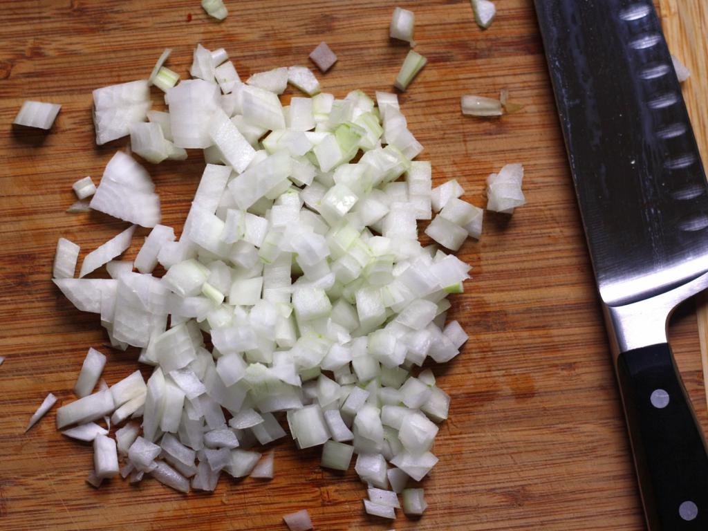 Луковицы режем как удобнее. Обычно нарезка кубиками более приемлема в блюдах.