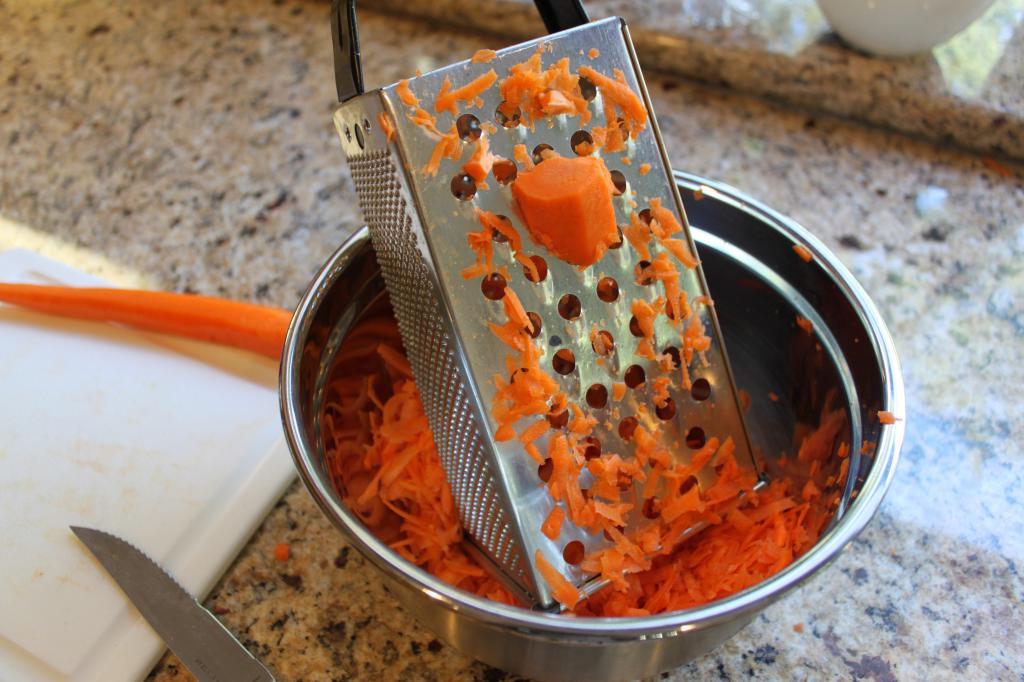10.К луку присоединяем натертую морковку. Немного ужариваем.
