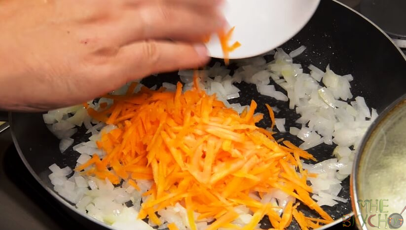 Следует учитывать, что лук гораздо быстрее обжаривается, чем морковь, поэтому в первую очередь следует обжарить морковь и только потом можно добавить лук