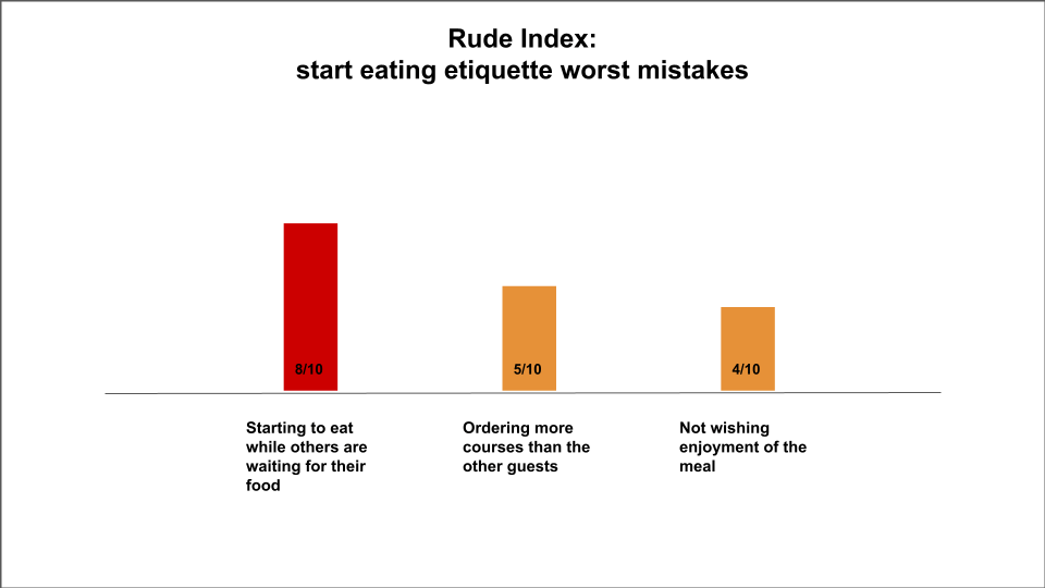 В официальных случаях напитки, подаваемые перед ужином, должны быть допиты или оставлены перед тем, как сесть за стол. На менее официальных ужинах гости могут принести свои напитки к столу и выпить их там.