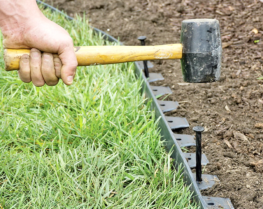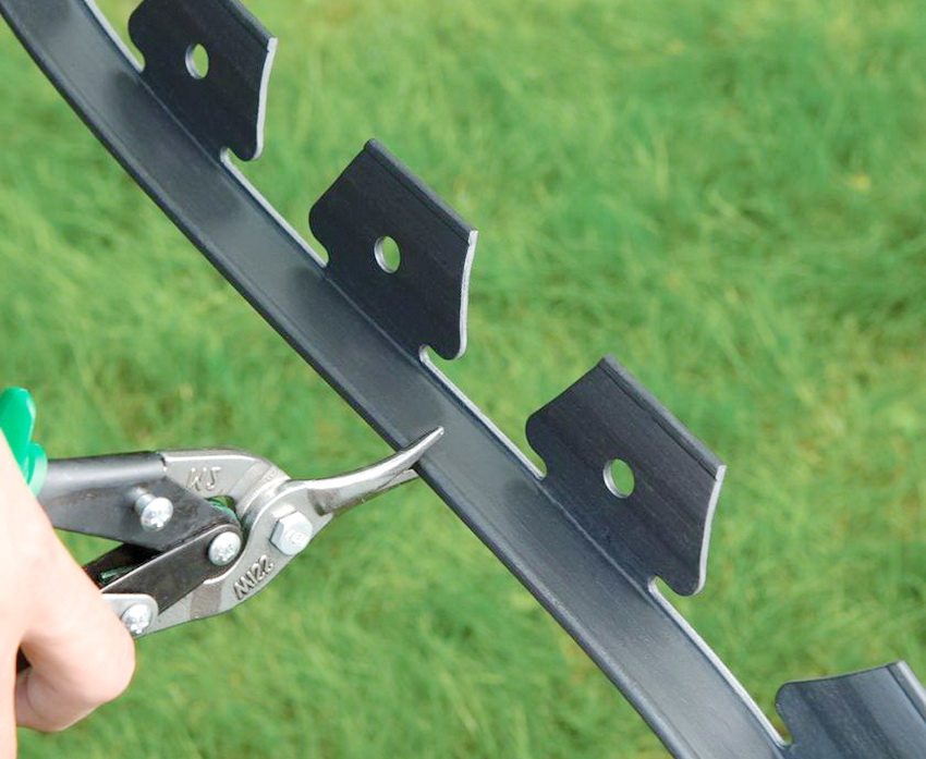 Для установки бордюрной ленты не требуется специальных навыков. Его установка довольно проста. Ленту протягивают через кольца, установленные на столбах, при этом ее нижнюю часть необходимо слегка врыть в землю. Затем ленту слегка растягивают, чтобы избежать деформации и придать ей четкую форму. Способность ленты принимать любую форму позволяет создавать самые разные варианты дизайна сайта.