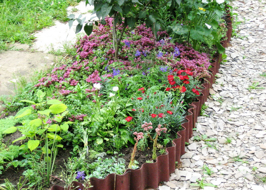 Бордюрная полоса для клумб широко применяется дачниками, т. к. этот материал обладает несколькими достоинствами: