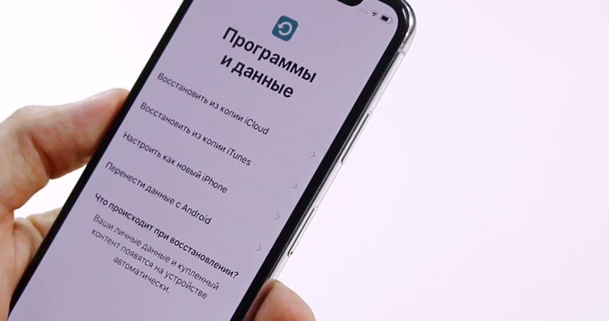 - Затем вы получите доступ к экрану «Программы и данные», в котором перечислены настройки. Выберите один из вариантов, в соответствии с вашими потребностями: «Восстановить из копии iCloud», «Восстановить из копии iTunes», «Настроить как новый iPhone», «Перенести данные с Android». После этого начнётся активация гаджета. Если вы предпочитаете переносить выбранные данные со старого iPhone, то восстановите айфон из копии iCloud. В этом случае, на новом девайсе появится вся информация, которую вы хранили на старом айфон.