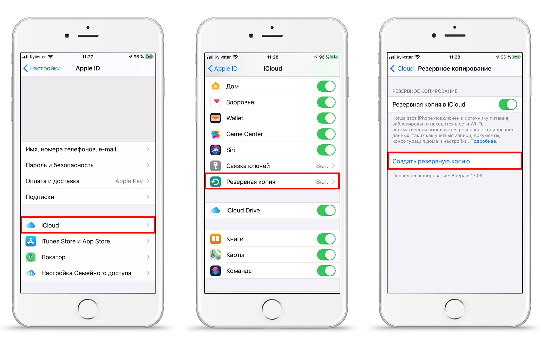 - Перейдите: «Настройки» > (имя вашего профиля) > iCloud > «Резервная копия в iCloud».