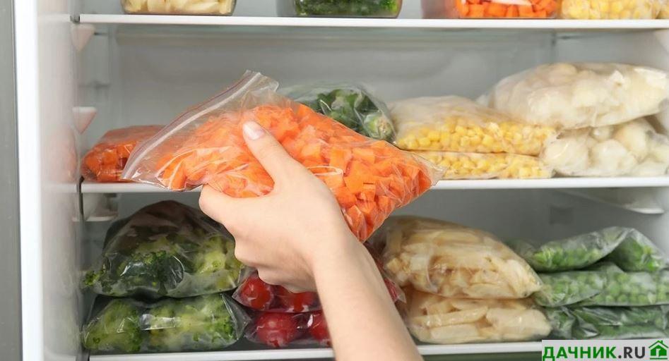 Кроме довольно хлопотного сохранения свежей моркови в «зоне свежести» холодильника, практикуется ее заморозка. Чаще всего на зиму замораживаются натертая или измельченная кубиками морковь. В этом виде она может храниться все холодное время года, хотя и теряет часть вкусовых качеств и полезных свойств. При помещении в морозилку ее также следует упаковать: в контейнеры, вакуумные упаковки или полиэтилен. В этом виде морковка годится в поджарку, в овощные рагу и любые блюда, куда будет определена фантазией кулинара.