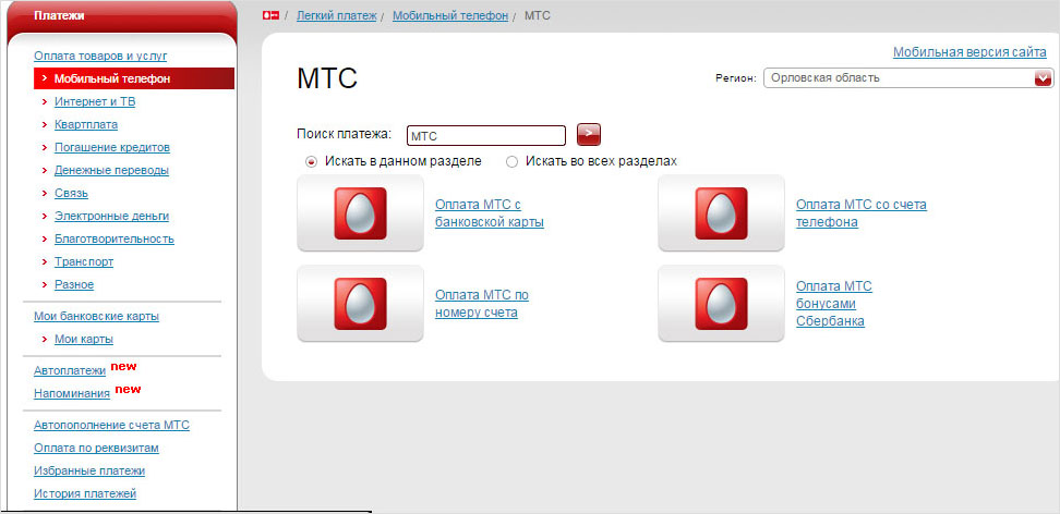 Если оплата мобильного через Личный кабинет будет производиться неоднократно, то можно сохранить шаблон или привязать банковский счет к номеру мобильного оператора.