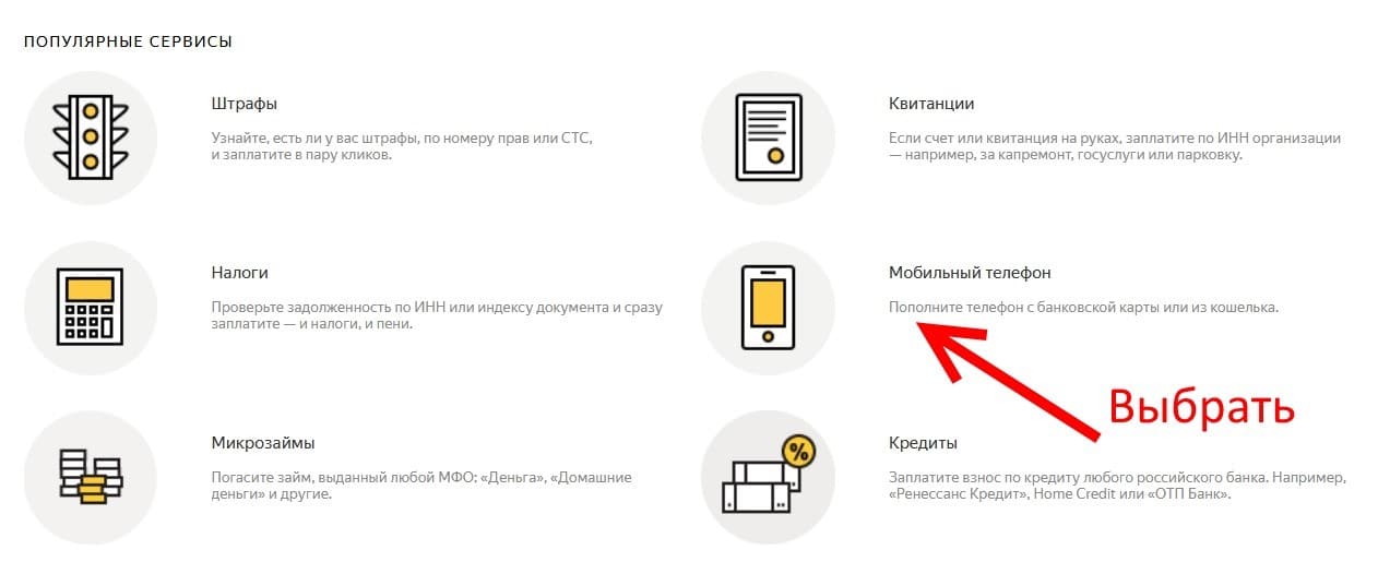 В открывшемся окне выбрать оператора сотовой связи или кликнуть «Мобильная связь. Оплата любого номера телефона». Второй вариант подходит, если вы пополняете счет другого человека.