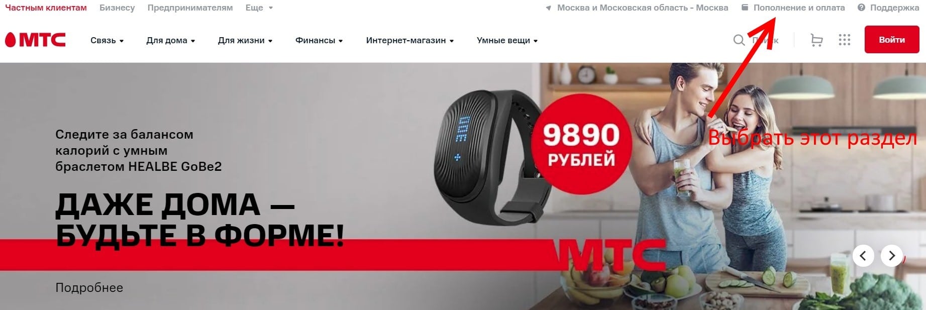 - Система автоматически отправляет нас в раздел «Мой МТС»/»Управление платежами»
