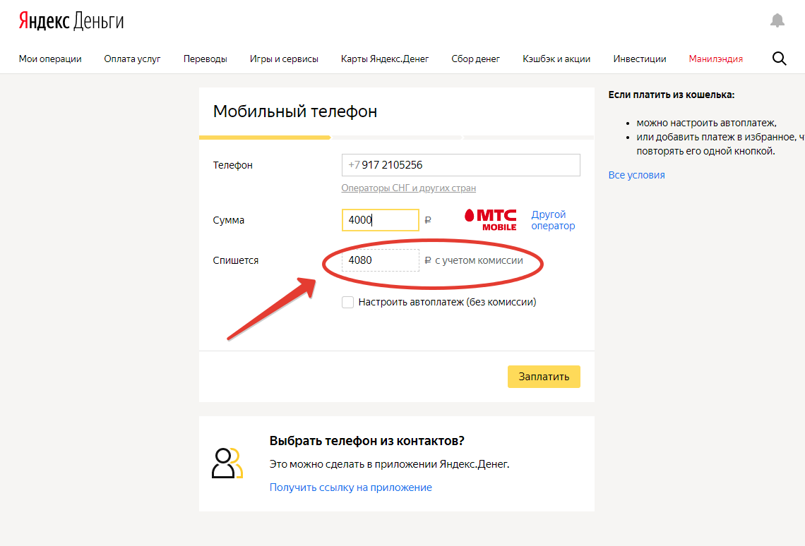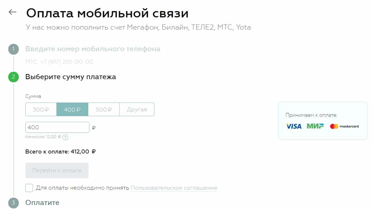 Обратите внимание, что за пополнение телефона на сумму более 3 000 рублей в календарном месяце сервис взимает комиссию в 2%. К примеру, за перевод в размере 4000 рублей вы заплатите комиссию 80 рублей