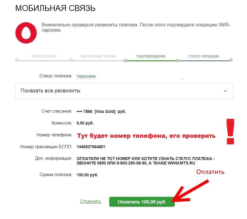 Последнее, что нужно сделать, это перепроверить номер телефона и подтвердить оплату.