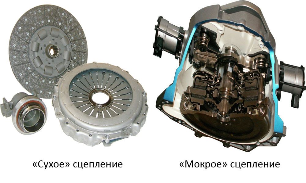 - по виду трения – сухое (когда фрикционные накладки работают в воздушной среде) или мокрое (сцепление, работающее в масляной ванне);