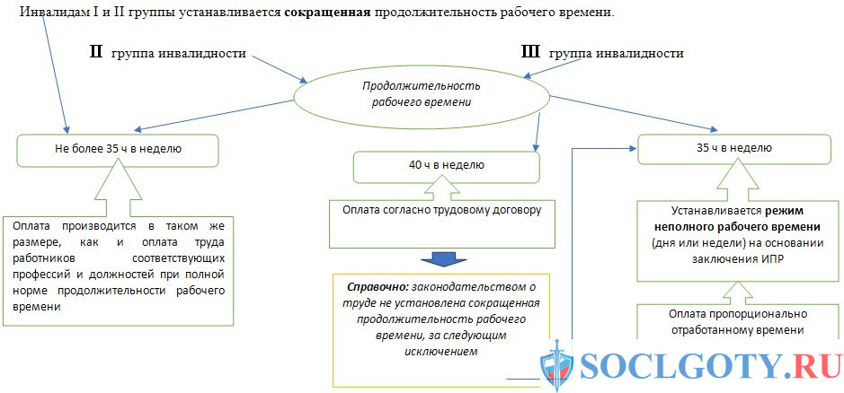 Для инвалида, который имеет третью категорию, рабочая неделя не должна превышать 40 часов. В иных случаях согласно законодательству длительность его дня должна быть сокращена. Все инвалиды должны знать, что поднимать вес более двух килограммов им не рекомендовано.
