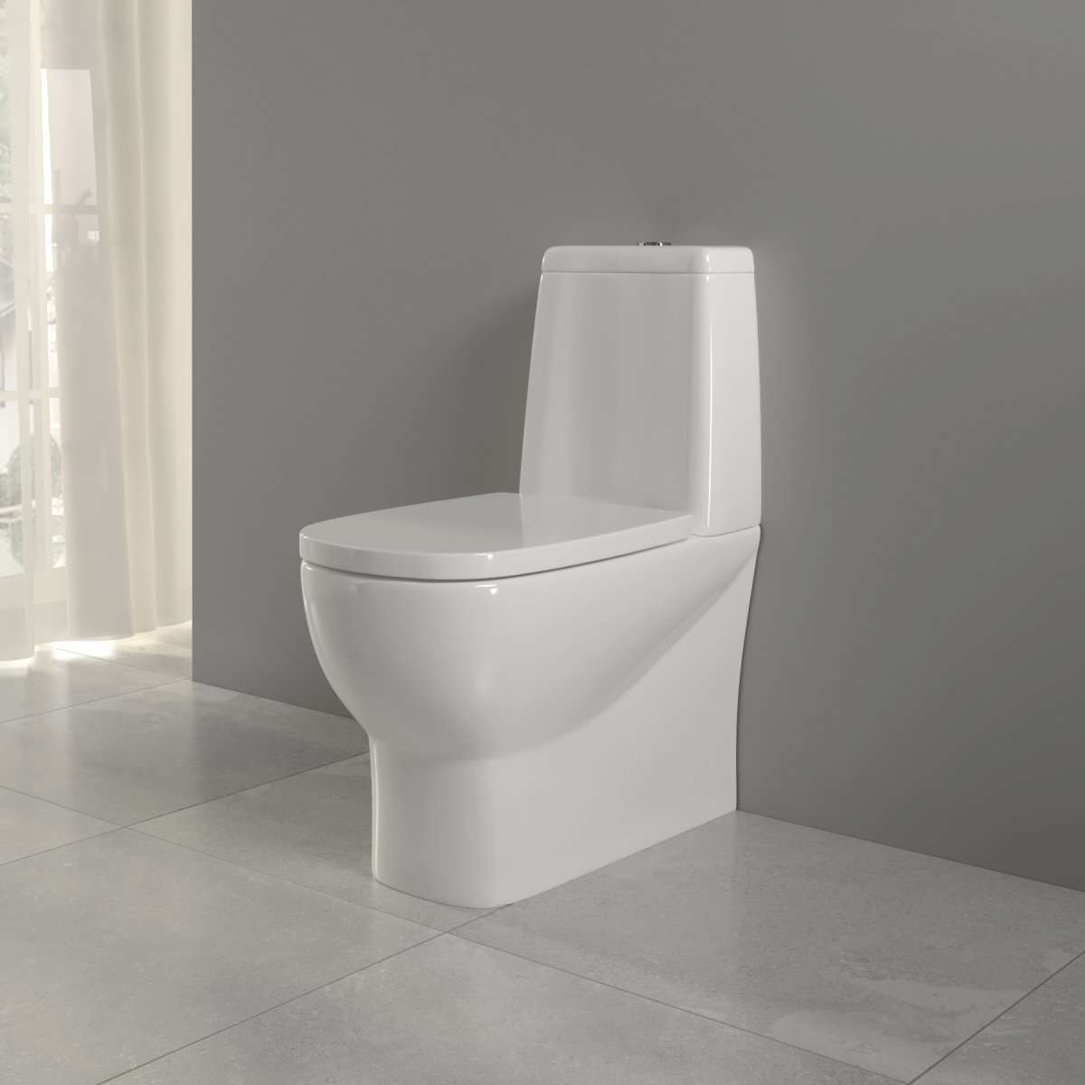 Компактный фарфоровый унитаз с крышкой, закрывающейся по системе микролифт. Бачок устанавливается поверх унитаза, с нижним подводом воды. Для слива предусмотрены две кнопки — для полного и для экономичного варианта. Сидение выполнено из дюропласта, который не царапается и легко очищается. В наличии и система антивсплеск, позволяющая избавиться от разбрызгивания воды при смыве. Унитаз овальной формы, компактный и удобный в использовании, его не боятся дети. По мнению пользователей бачок выглядит очень маленьким, но его объема достаточно для комфортного слива.