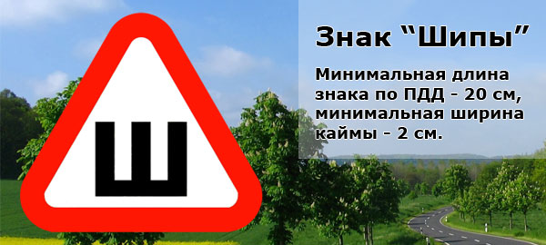 Знак шипы можно как приобрести в магазине, так и изготовить самостоятельно. При этом нужно соблюдать следующие условия: