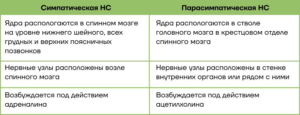 Вегетативная нервная система в свою очередь подразделяется на два отдела, названия которых можно запомнить по первым буквам ситуаций: