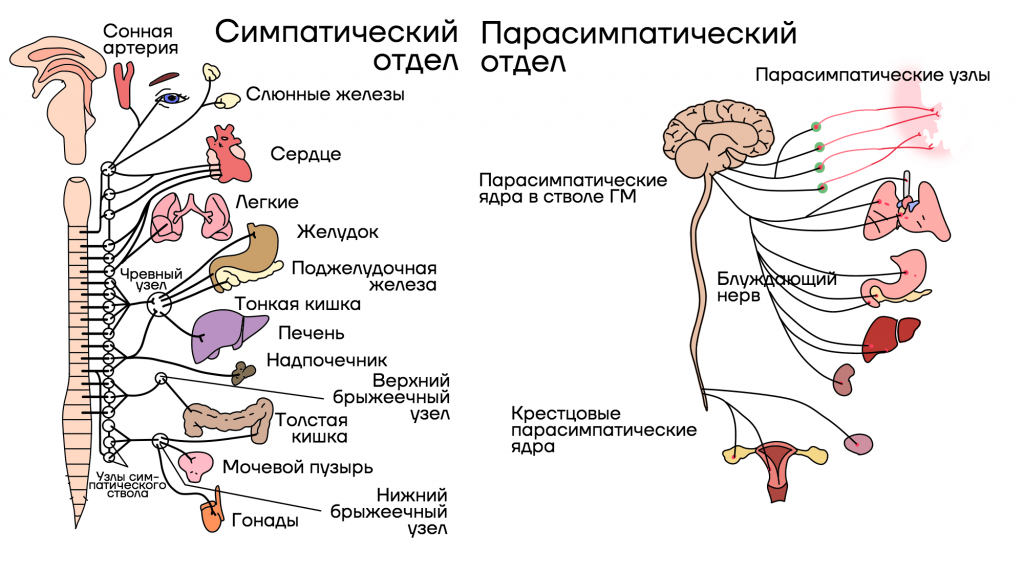 Посмотрим, какое действие оказывает каждый из отделов на наш организм: