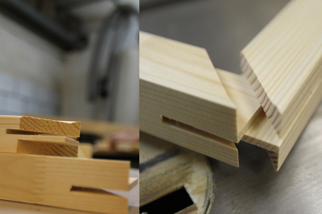 Материал, который мы используем для изготовления художественных подрамников — это качественно высушенные сращенные рейки из сосны, имеющие специальную ступеньку. При сборке эта ступенька (бортик) оказывается снаружи по периметру и обеспечивает при качественной натяжке отсутствие прилегания холста (гобелена) к поверхности рейки. Бортик подрамника делается скругленным, чтобы ткань холста не перетиралась. При размерах