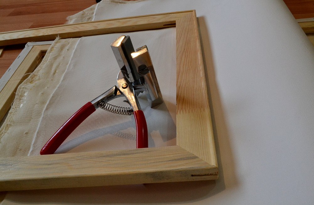 Специальные щипцы для натягивания холста. Их можно купить практически во всех специализированных магазинах. У этих щипцов плоская поверхность, которая позволяет натянуть холст, не оставив на нем дыр.